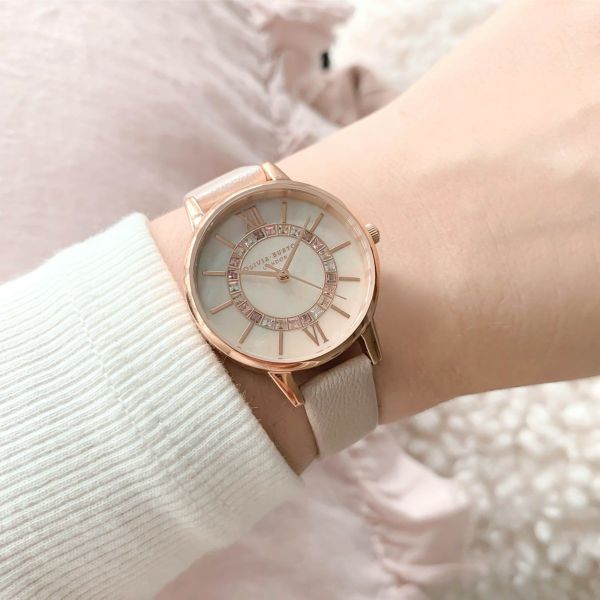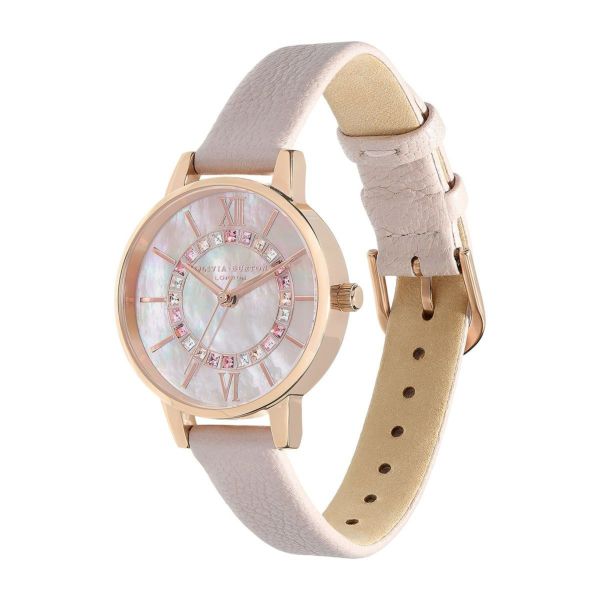 ブランドの定番コレクション、ワンダーランドに新作が登場。ローズカラーのマザーオブパールの文字盤に、淡いピンクグラデーションのクリスタルを贅沢にあしらい、きらめくパールのストラップを合わせました。ロマンティックなこの一本は、ピンク好きのあなたに。