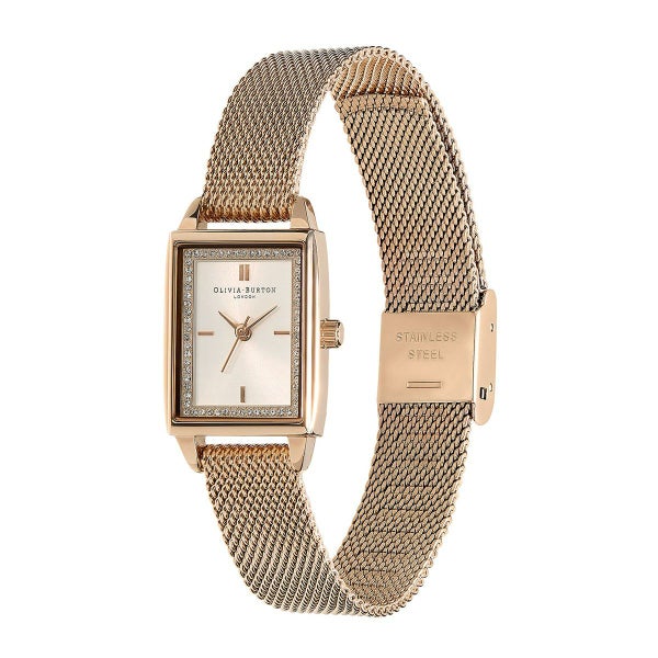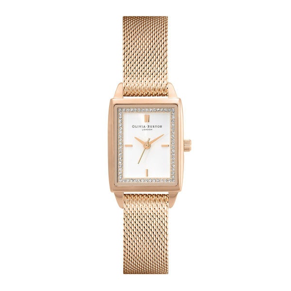 ロンドンの伝統的なタウンハウスをイメージした長方形のケースは、その名の通り、タイムレスで洗練された魅力を放っています。パウダーホワイトの文字盤にはクリスタルを敷き詰め、エッチングマーカーを配してシンメトリーとミニマリズムを追求しています。カーネーションゴールドのメッシュストラップがモダンかつクラシックな美しさを演出します。