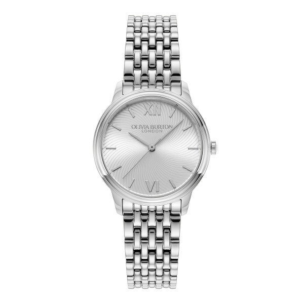 このコレクションは「時間の経過」から着想を得ており、光沢感のあるサンレイダイアルにスワールデザインを施すことで、奥行きのある質感と動きを加えています。
