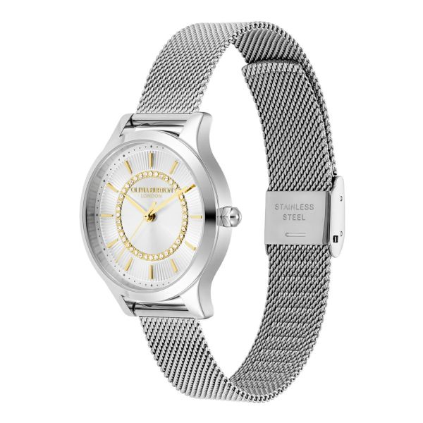 オリビア・バートンのアイコニックなワンダーランド・コレクションをベースに、ラグジュアリーに仕上げた「ワンダーラスト」コレクション。光り輝くサンレイ文字盤の中央にはサンバースト仕上げが施され、外縁には小さなゴールドのミニッツマーカーがあしらわれている。内側のマイクロパヴェクリスタルで、よりラグジュアリーで洗練されたスタイルに。