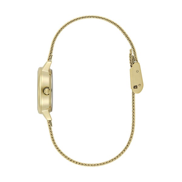 ゴールドプレート仕上げのメッシュストラップは、しなやかなフィット感と洗練された雰囲気を両立。