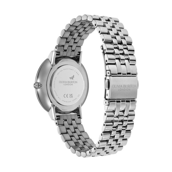 さらに、文字盤と同系色のメタルブレスレットを合わせることで、統一感のある上品な仕上がりとなっています。