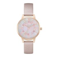 真っ先に心惹かれたのが、愛らしいピンクグラデーションのような石のサークルです💜 淡いペールピンクの中に、さりげなく存在感を出しながらも、可愛らしさと美しさが同居しているデザインに、しっかりと心を持っていかれました。春を待つこの季節に、ぴったりな時計だと思います。