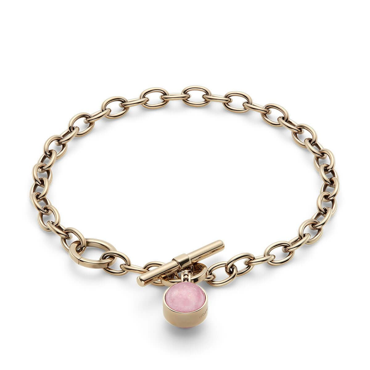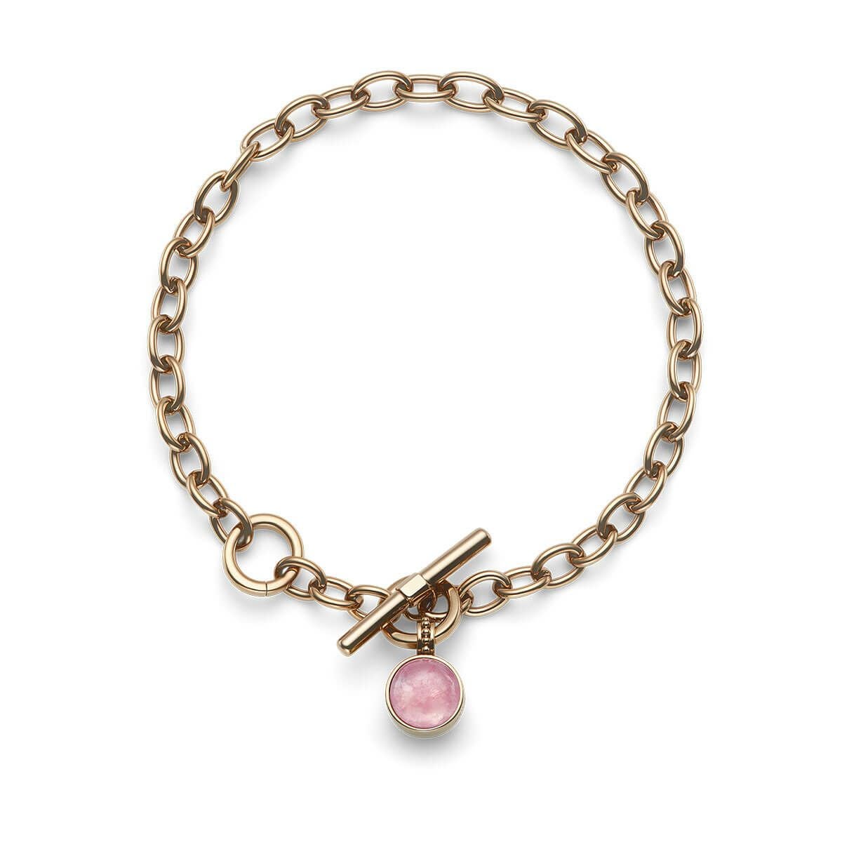 トレンド - ローズクォーツ カボション ローズゴールド ジェムストーン トグル ブレスレット