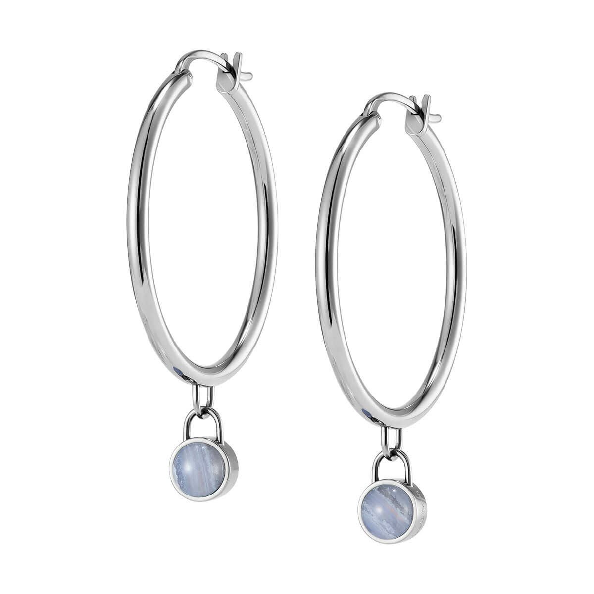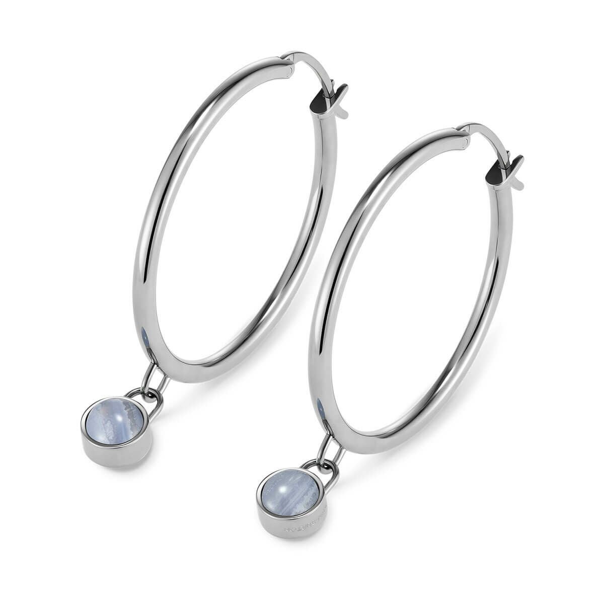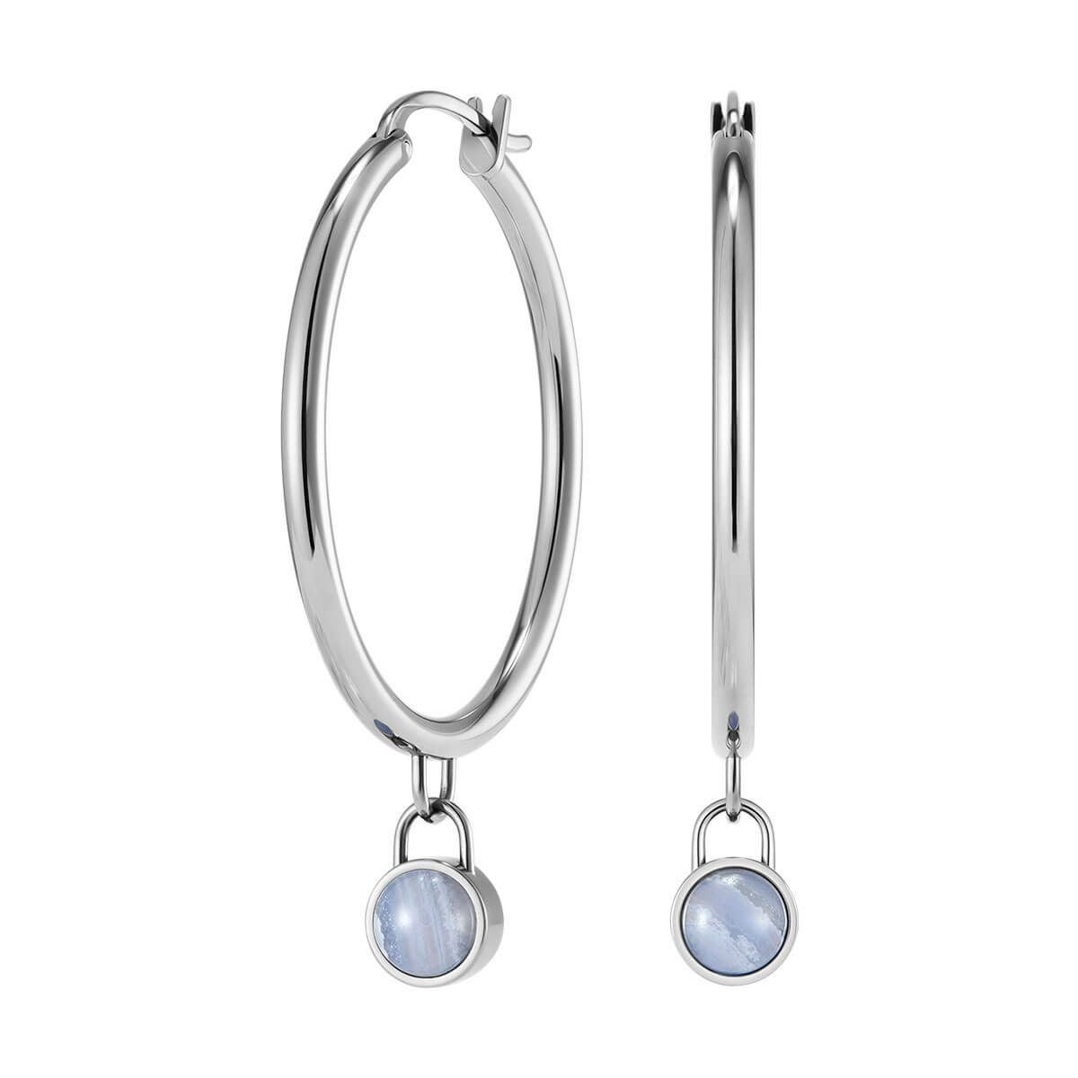 トレンド - パープル アゲート カボション シルバー ジェムストーン フープ ピアス