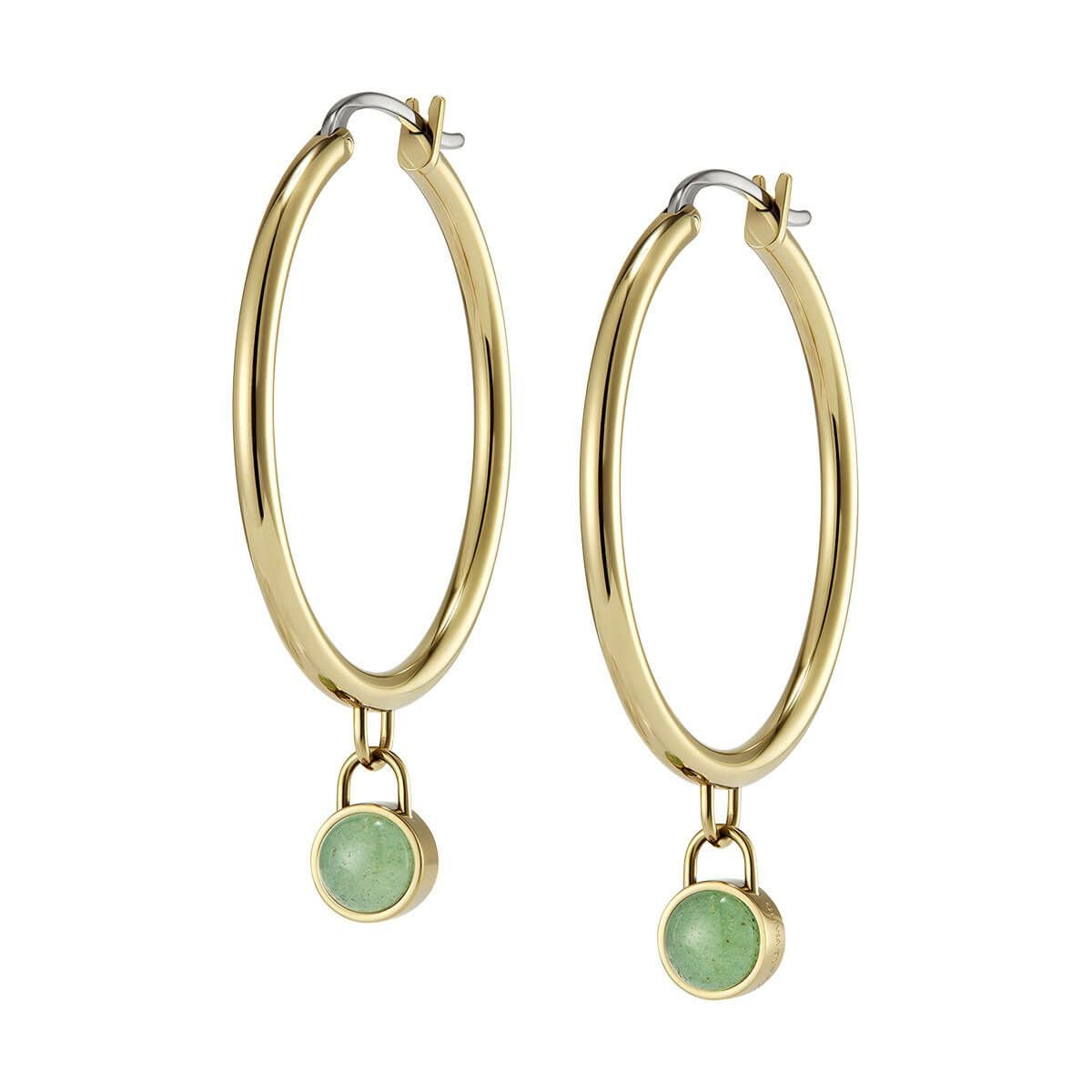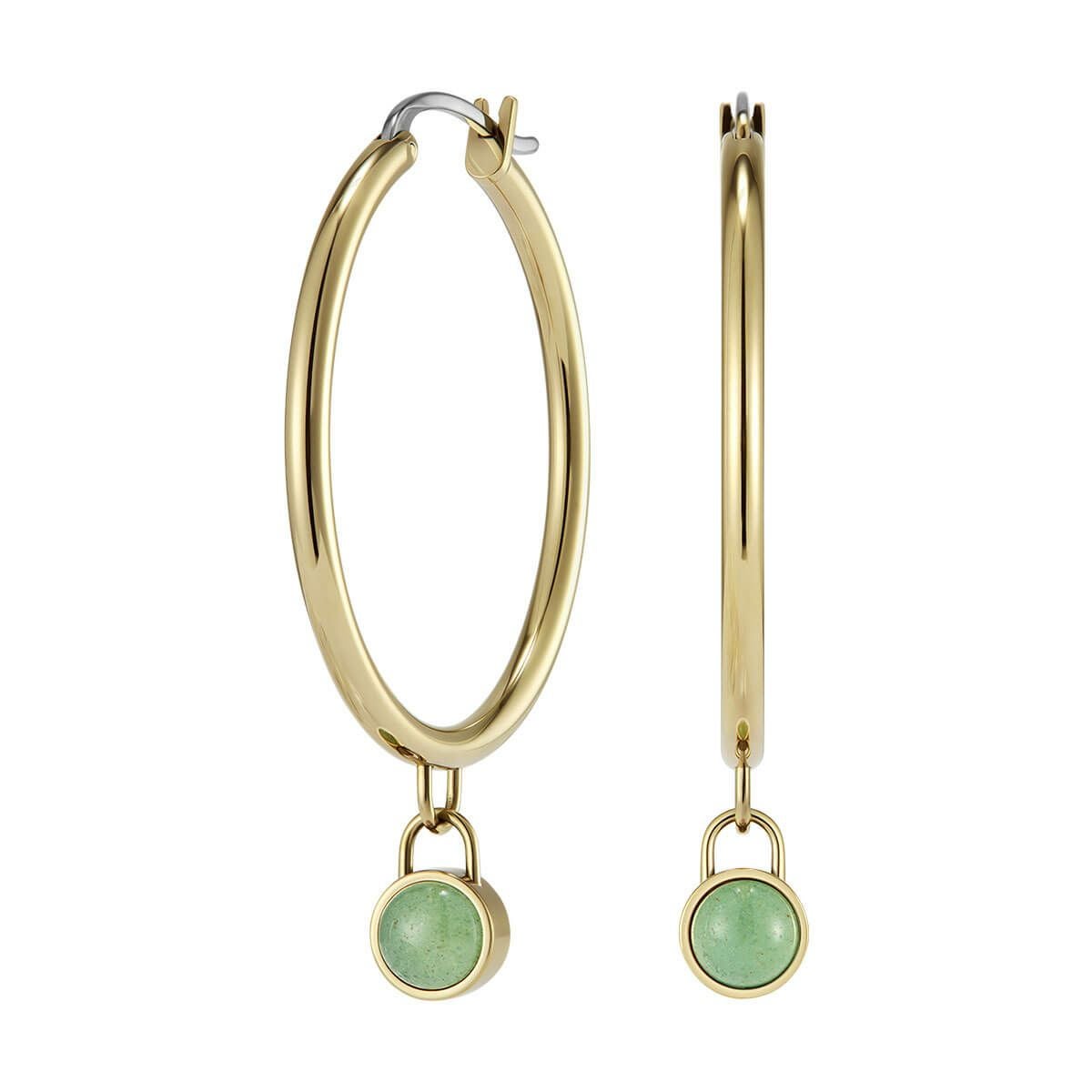トレンド - アベンチュリン カボション ゴールド ジェムストーン フープ ピアス