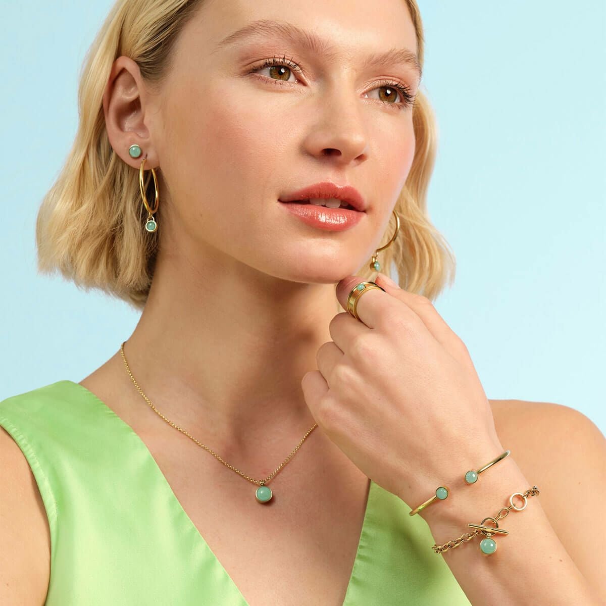 トレンド - アベンチュリン カボション ゴールド ジェムストーン バングル