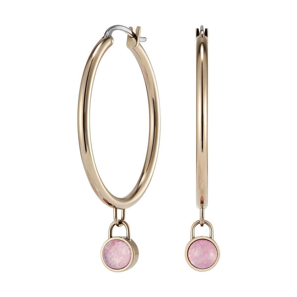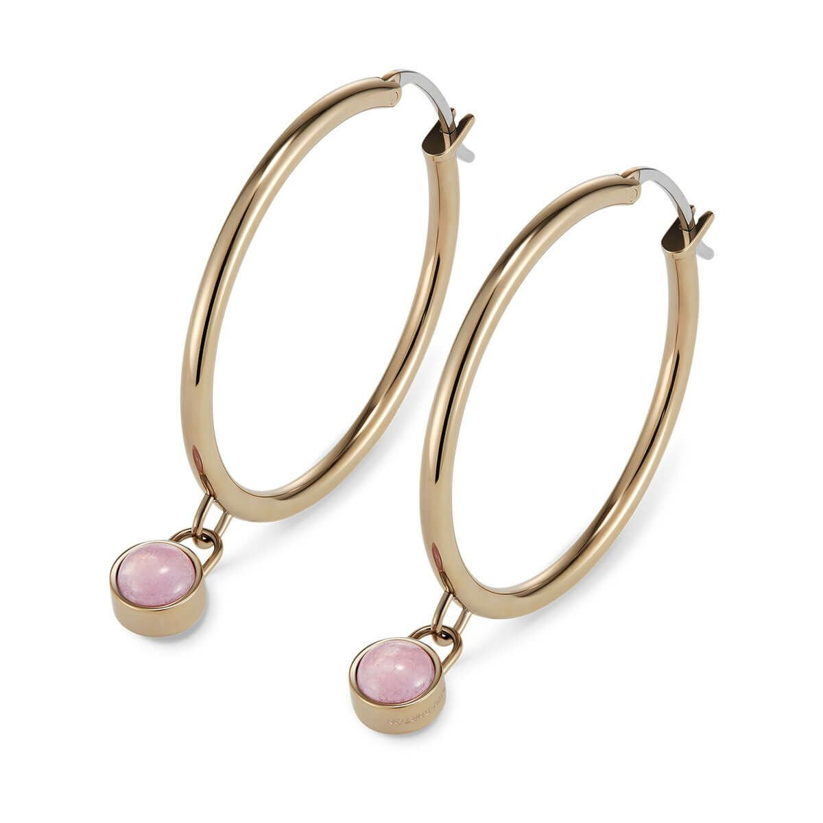 トレンド - ローズクォーツ カボション ローズゴールド ジェムストーン フープ ピアス
