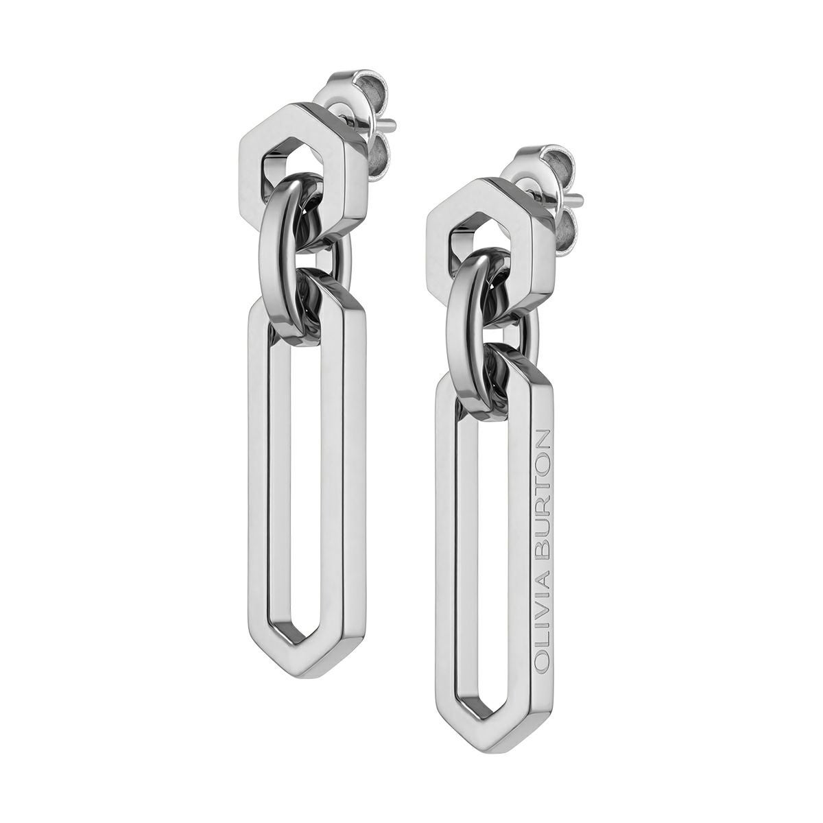 トレンド - ヘックス リンク シルバー ドロップ ピアス