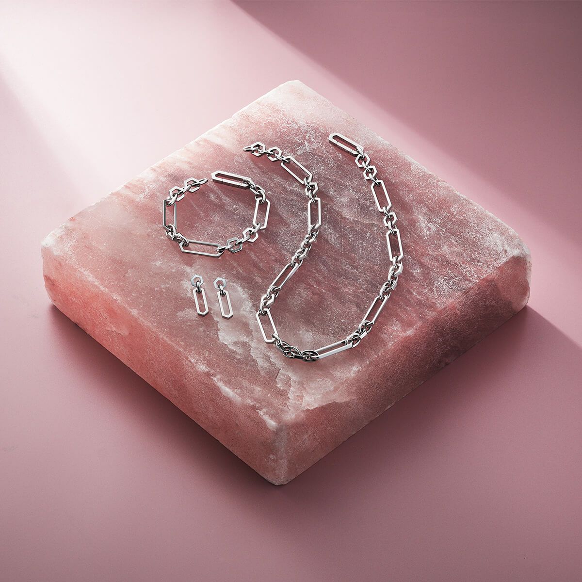 クラシック - 34mm グロウフル ピンククラッシュ&シルバー ブレスレット