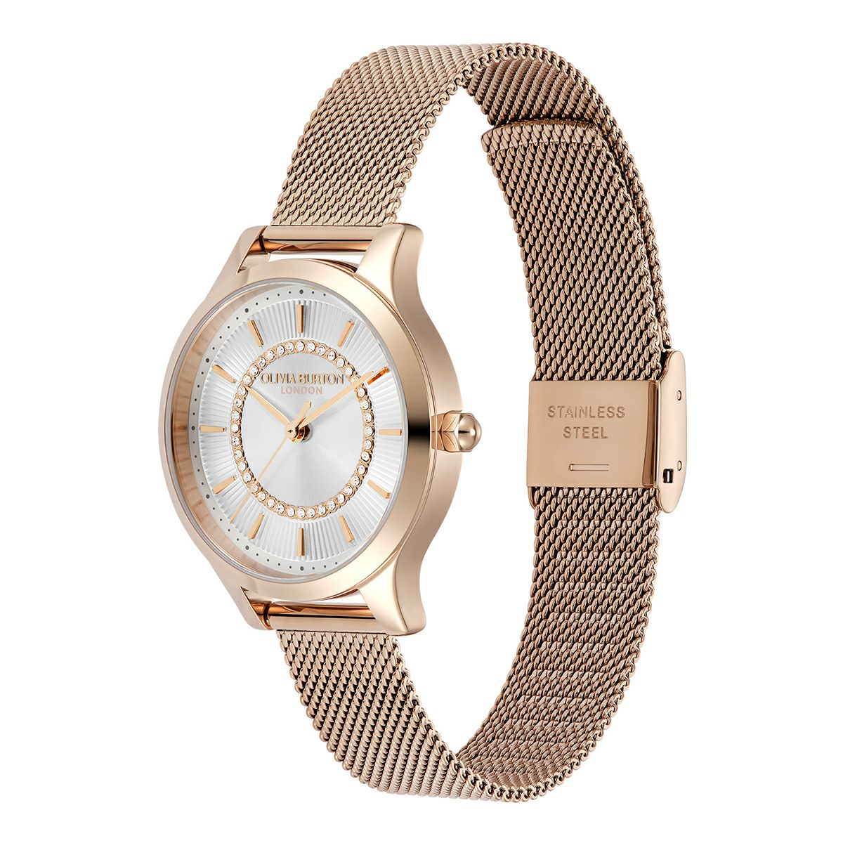 クラシック 30mm ワンダーラスト ホワイト&ローズゴールド メッシュ ウォッチ
