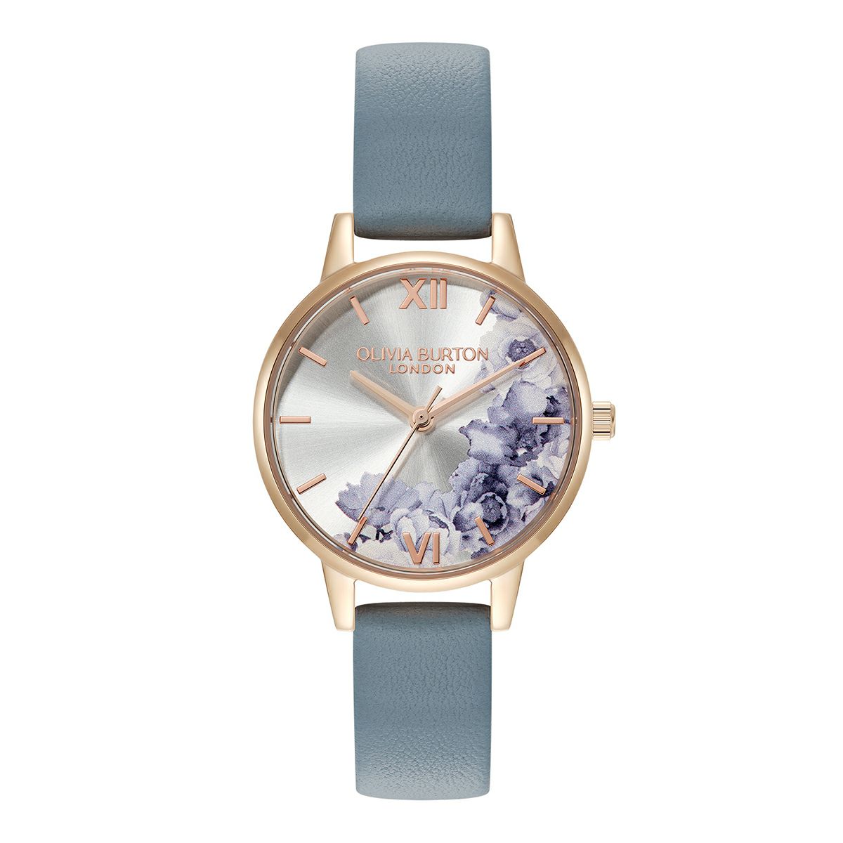 シグネチャー 30mm イラストレイテッド フローラル ローズゴールド & チョークブルー レザーストラップ ウォッチ