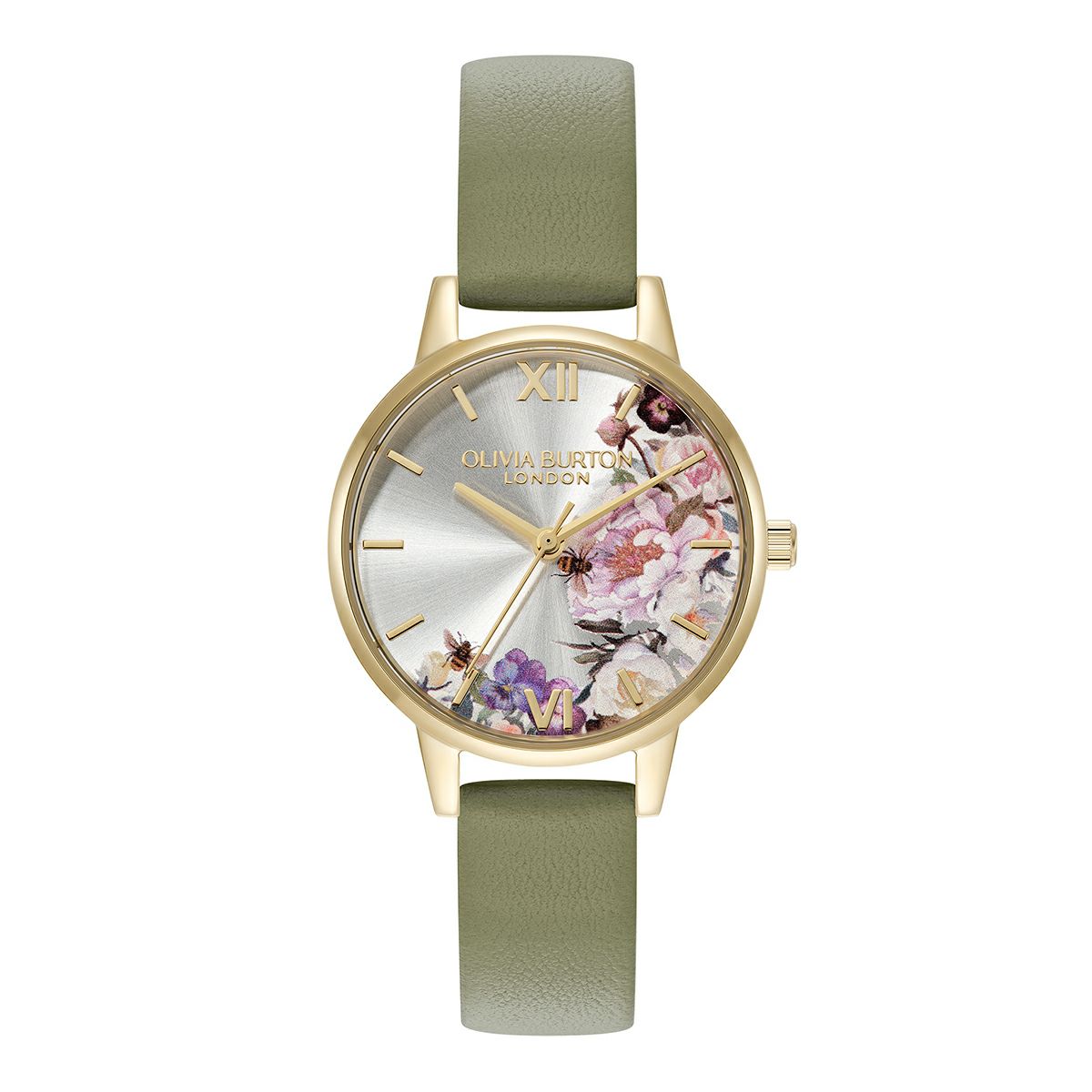 シグネチャー 30mm イラストレイテッド フローラル ゴールド & セージグリーン レザーストラップ ウォッチ