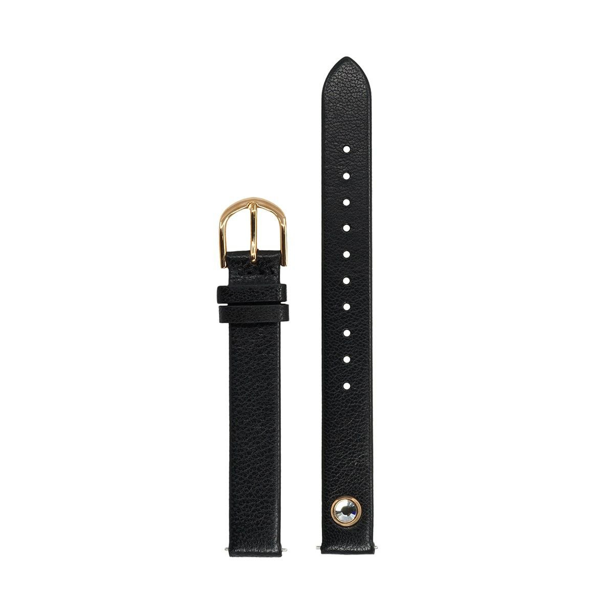 12mm用替えストラップ - ミディ ブラック&クリスタルスタッド&ローズゴールド(腕時計用替えベルト)